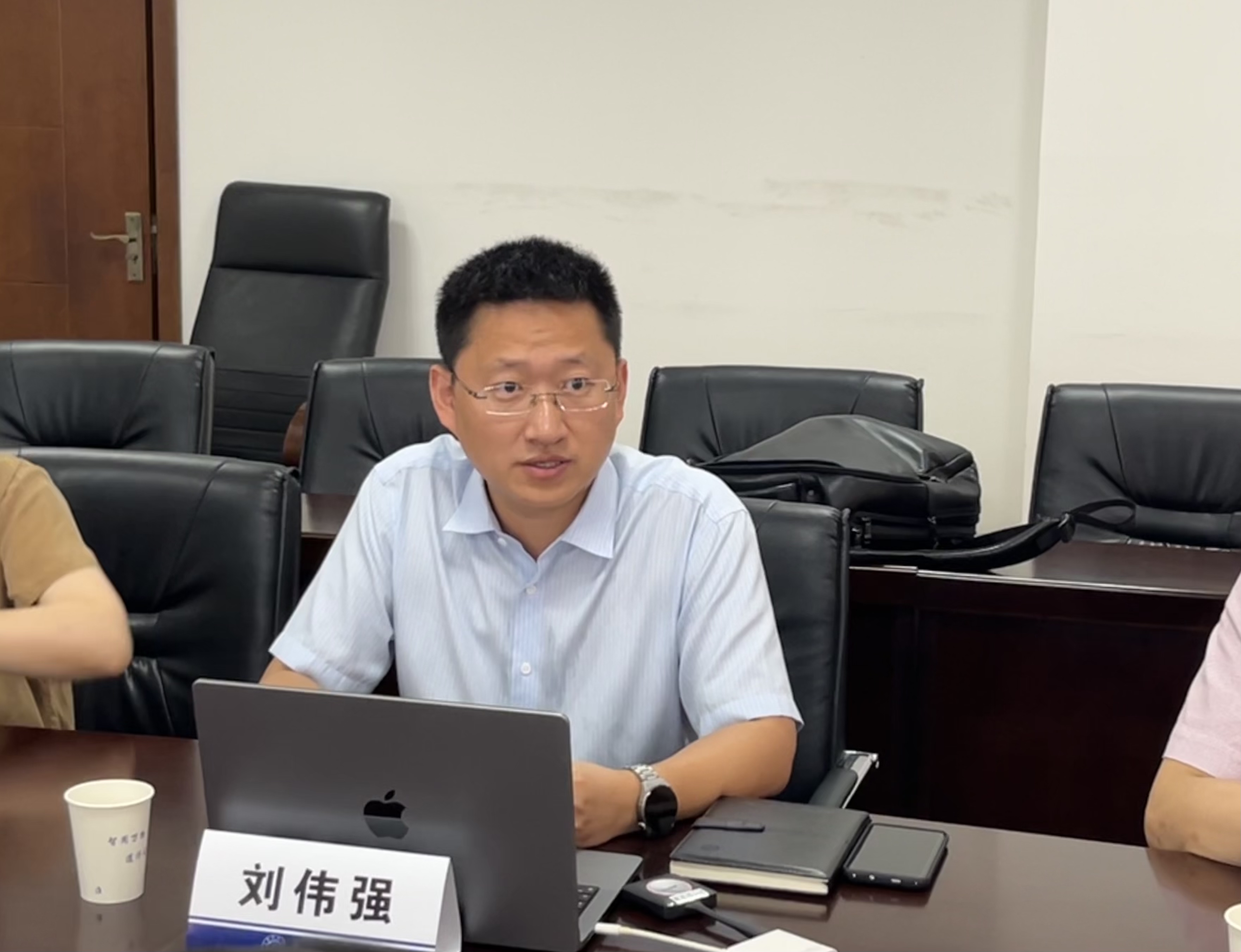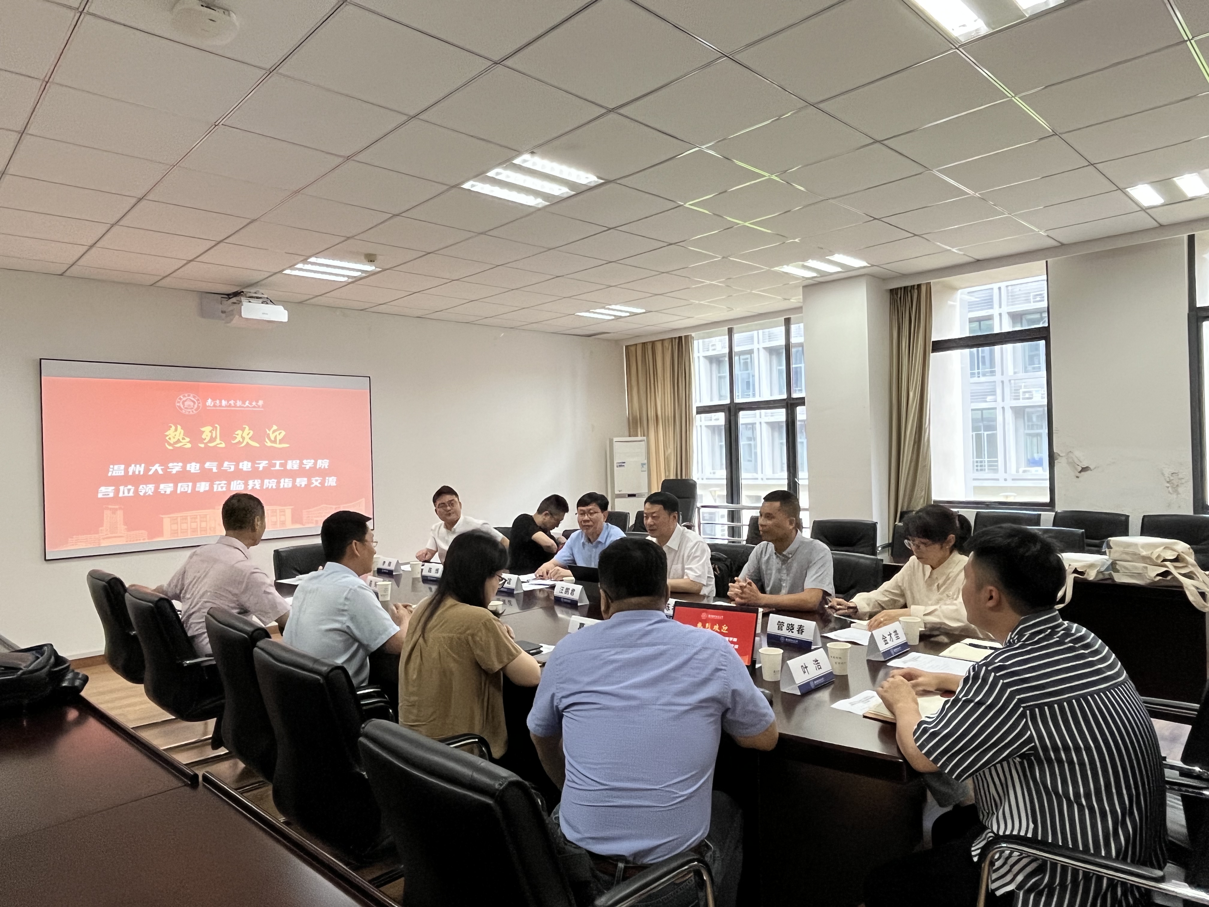 刘伟强副院长热烈欢迎汪鹏君院长一行到访,并介绍了我院的基本情况以及近年来在近年来在集成电路学科建设和人才培养等方面取得的进展和成果。汪鹏君院长则介绍了温州大学电气与电子工程学院在师资队伍、科研平台、学科体系和集成电路专业建设等方面的情况。