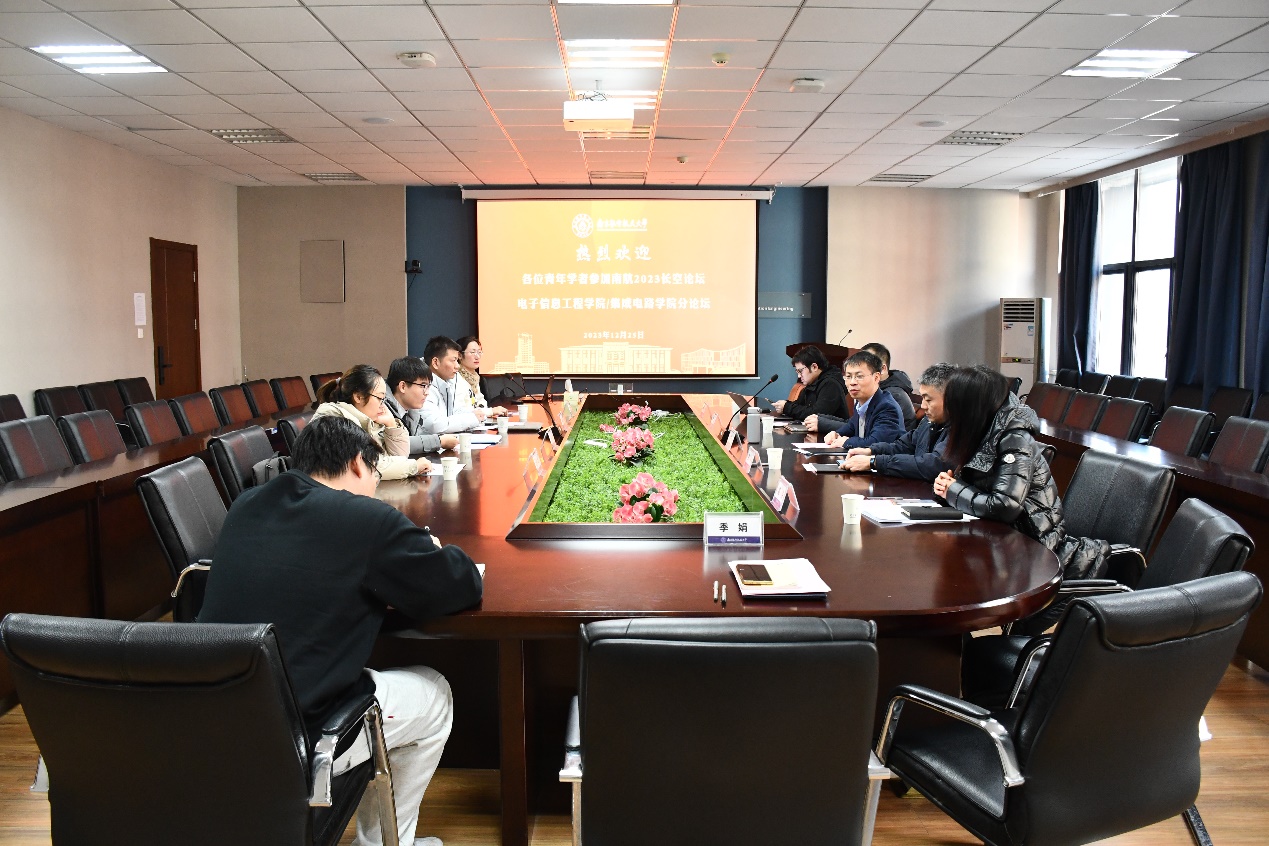 首先,潘时龙代表学院对参加本次分论坛的青年学者表示欢迎。他指出,目前学院正处于高速发展阶段,对青年人才的需求日益迫切,期待青年学者能够加入电子信息学院,结合自身专业特长,建设电子信息类学科,在服务航空航天民航事业上做出贡献。随后,潘时龙从学院历史、学科概况、科研工作、教学工作等方面向参会人员介绍了学院基本情况。并对学院目前的学科发展方向和人才培养模式做了简要介绍。信息与通信工程系主任吴迪、教授代表周福辉、集成电路系主任葛芬分别对学院雷达成像、天地一体频谱认知和集成电路团队进行了介绍。