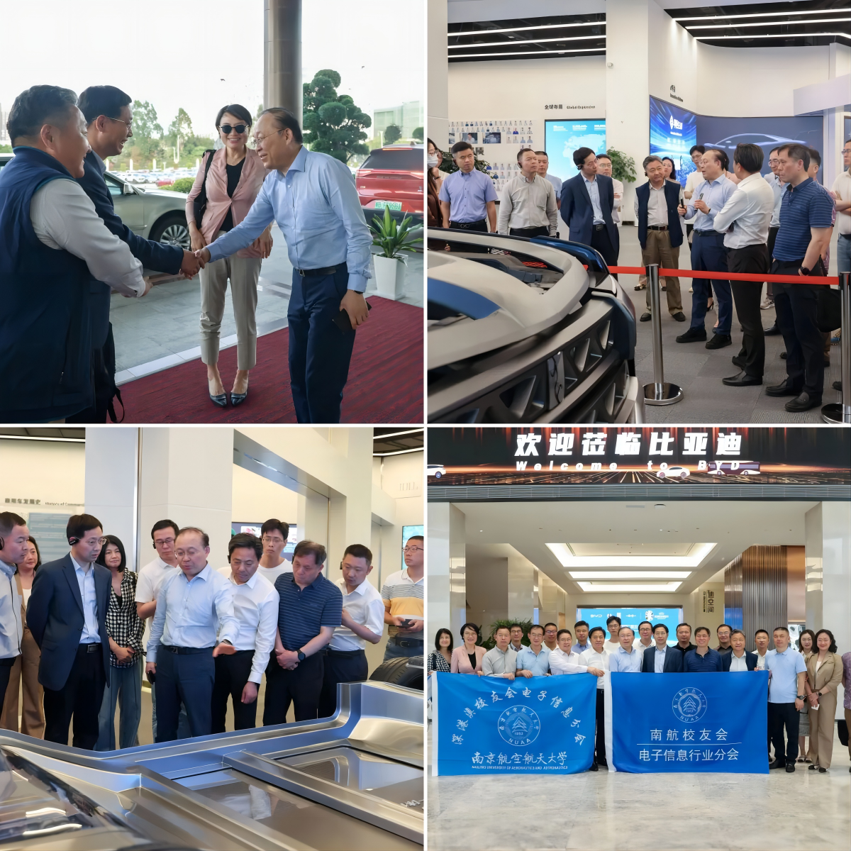 为紧密团结广大南航电子人,加强校友联系及校企交流合作,积极推动新质生产力发展和促进高质量发展,3月26日—3月27日,南航校友会电子信息行业分会以“探寻新能源、数字经济、低空经济时代的合作机遇”为主题,开启了深圳企业走访学习活动。本次活动走访了中国电子信息产业集团总部、中国电子数据产业集团,比亚迪股份有限公司,北京真视通科技有限公司(深圳),深圳市信维通信股份有限公司,深圳市蓝海华腾技术股份有限公司,深圳市金威源科技股份有限公司等企业。中国电子信息产业集团党组成员、副总经理陆志鹏,比亚迪公司首席科学家、南航深港澳校友会会长廉玉波受邀出席本次活动;活动得到了深港澳校友会的鼎力支持、精心组织、细致安排,执行会长俞力,副会长、电子信息行业分会会长吴宾,荣誉秘书长张红等全程陪同;英国365集团公司党委书记季海群,原党委书记聂东林,南航校友会电子信息行业分会执行会长张建国,副会长沈耀伟、王刚,理事赵安、张宝生、汪根祥、李海峰、印亚鹏、王祺,驻会秘书张妍等参加了此次走访学习活动。