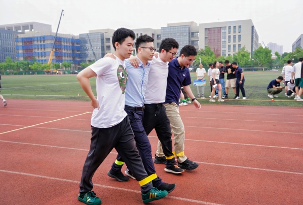 比赛开始前,王健同学代表全体参赛师生宣誓,焦柯源同学带领全体师生热身,为比赛做好准备。随后,六支团队于“珠行千里”“四人五足”“穿越呼啦圈”“趣味接力跑”和“合作拔河”等项目接连开展,师生们稳扎稳打的竞技实力与奋勇拼搏的精神风貌,为运动会注入蓬勃生机。